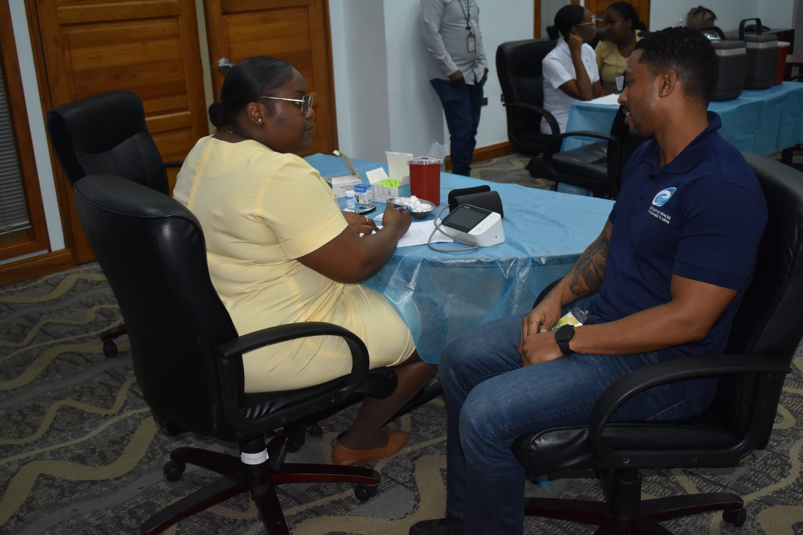 First up was the health fair where employees received free blood pressure and glucose testing, medical counsel, as well as HIV testing kits from the staff of the North Central Regional Health Authority. Immunizations were also dispensed for Hepatitis B, Tetanus and the flu.