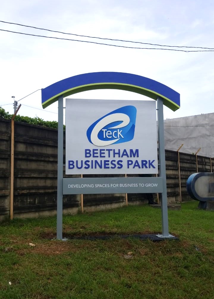 In an effort to maintain the beautification standards at all of e TecK’s Industrial Parks, the Facilities Maintenance Unit has been progressing and advancing with the refurbishment of the main signage located at the entrance of parks. At present, a total of eight parks received refurbished entrance signs including the Tamana InTech Park, the head office of e TecK, Diamond Vale, Abattoir, Beetham, Frederick Settlement and Plaisance parks.